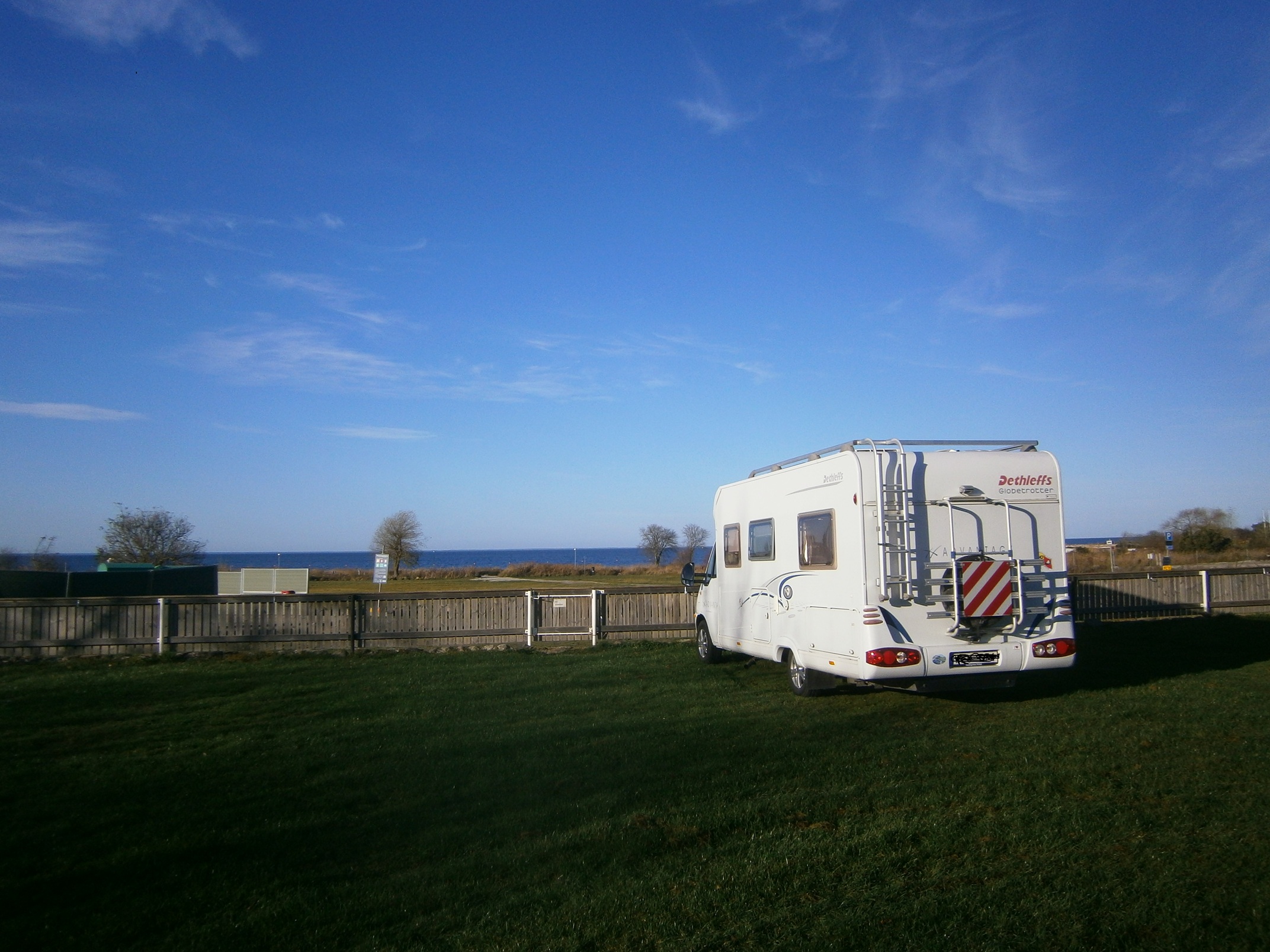 1/4 Mobilen väcker 6. K går på toa. Jag startar frukosten. Efter frukost packar vi ihop. Betalar i apparaten €132. 10 i 7 lämnar vi Hintz och Burg i dimma. 4 ö 7 står vi i bana 6 i dimma. 7.15 är vi ombord som enda husbil (?). Kommer fram i tid. Lätt soldis i Danmark. Men framåt Färöbron tjocknar det till sig igen. Det är nästan otäckt att köra i dimman. T o m öresundsbron ligger i dimma! Vid 10 ö 10 passeras betalstationen för Öresundsbron och dimma lättar totalt. 20 i 12 kör vi in på Strandängens camping. Får plats 27 (som vanligt). Solen skiner och det är ca 13 gr. Tar en ankomstdrink utomhus. Sedan lunch med den sista maple pecan flätan och kaffe. Duschar båda två. Skönt och det är gratis, eller rättare sagt ingår i avgiften. Äter hamburgare med bröd till middag. TV titt via TV och PC med campingens WiFi. Regnar ganska mycket under natten.