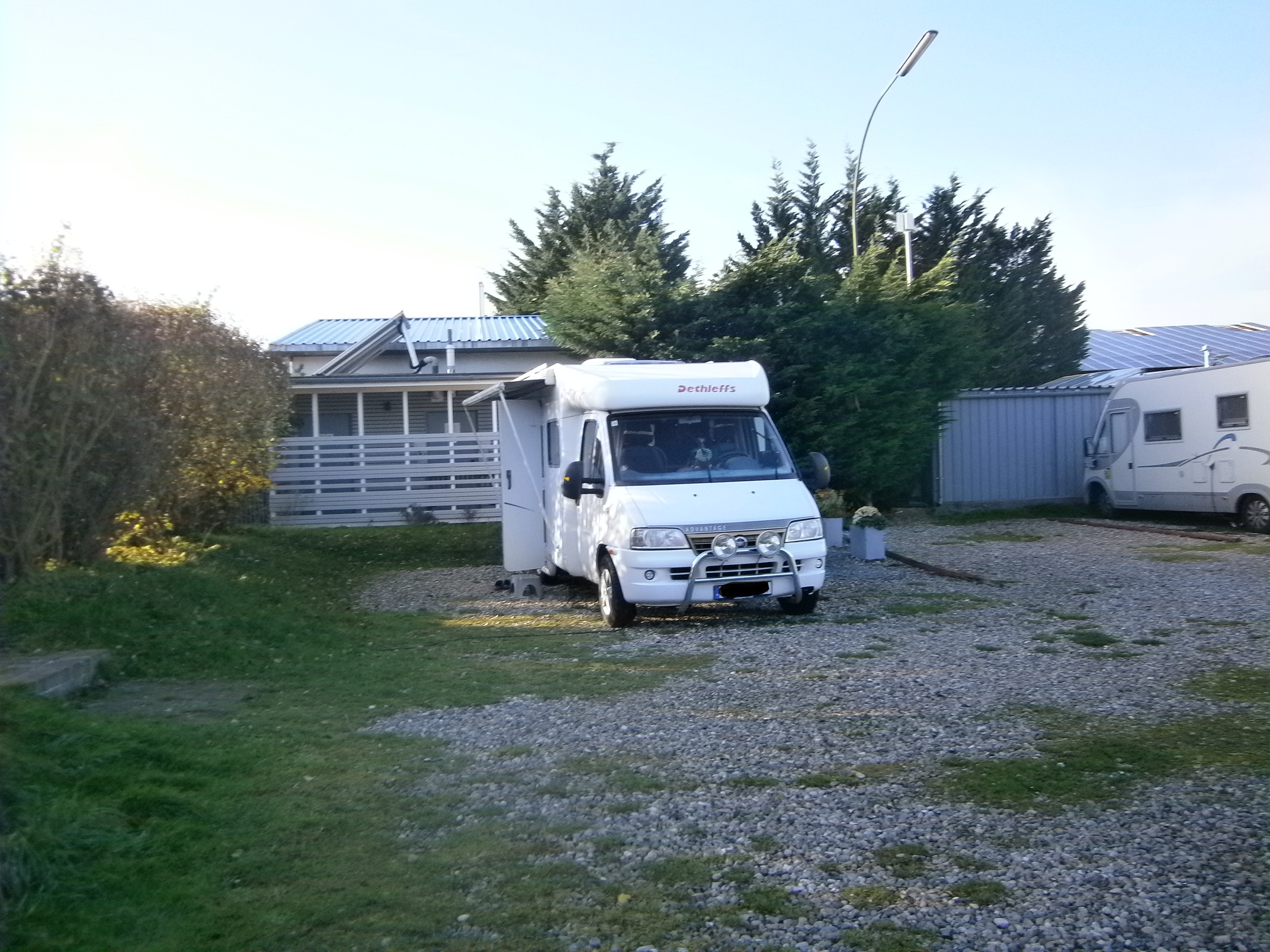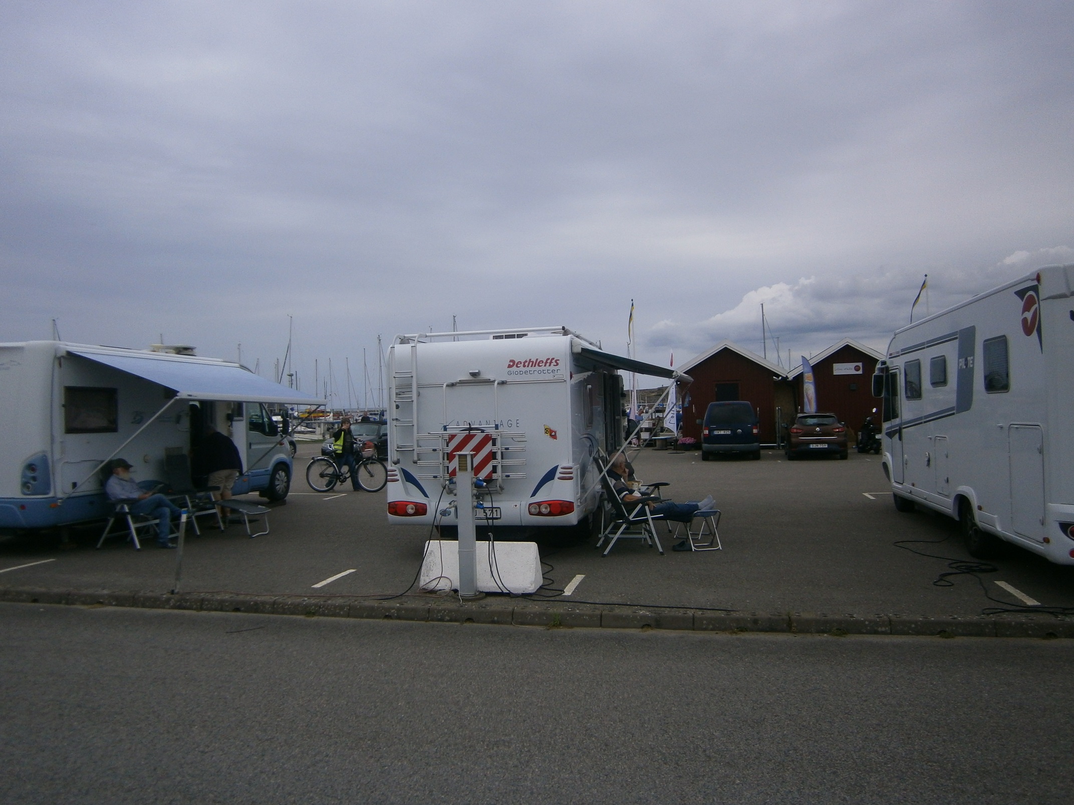 30 maj. Mobilen väcker 5.45, då är hushållet redan uppe och nästan klara för avfärd. Lämnar campingen 5 i 6. Lämnar kortnyckel och elskåpsnyckel i brevlådan. 20 ö 6 står vi vid incheckningen i hamnen. 1/2 7 står vi i bana 6. 7 får vi åka ombord. Äter medhavda mackor till frukost med köpt kaffe. Äter samma sorts macka till lunch också. Anländer Grenaa i tid. Vädret bra i Danmark. Tyska gränsen passeras 20 ö 3. Snabbhandlar på Lidl 1/4 i 4. Mot campingen! Checkar in med fru Johansen. Tar plats H6. Fixar till allt på nolltid. Sitter sedan och bara andas. Får SMS från Kickie ang. blomvattning. Äter pyttipanna till middag som K fixar till. Det blev bra med extra falukorv och lök. Sitter ute ett tag efter middagen innan det blir för "kallt". TV titt och DVD. Natti natti. 31 maj. Upp 20 ö 7. Går till Edeka och köper 6 vallmofralla, à €0,48/st. Frukost. Gott! Det har regnat som bara den under natten men där vi står så samlas inget vatten, det rinner ner mot servicehuset. Går och handlar bl a vitkålssallad och hushållspapper. Äter falukorvsvallmomacka till lunch. Gott. Ett rådjur smyger in på campingen ett par gånger. Kul. På em ramlar det in ett antal ekipage bl a en svensk. Vår hylla blir nästan full. Till middag blir det ytterfilé m klyftpotatis och brunsås. Gott. Sitter ute ett tag till. Kollar på TV. PC-TV fungerar dåligt. Tar ett par 'Allo 'Allo istället. 1 juni. Upp 7. Solsken. Köper bröd. Frukost. Går och handlar bl a kalvschnitzlar och fiskblock, 2 Bib vin. Utanför affären står ett jordgubbsstånd. Vi köper en ask för €4. Äter jordgubbarna till lunch, K som dom är och jag med mjölk. Dyrt men goda. Sitter ute tills middagsdags, Mörlunda pannbiffar med löksås (från Mörlunda) och Mörlunda potatis. GOTT! Kommer en del ekipage på em. TV titt + DVD. Natti natti 10. 2 juni. J upp 7. Förbereder frukosten. Vid 8 går jag till Edeka för att köpa frallor. Fullt som vanligt på en söndag. Kö till bageributiken (2 personal idag), men folk vet vad dom vill ha så det går ganska fort. Frukost med lika stora frallor som igår vilket är större än dom i förrgår. Går och handlar idag med. Dom i affären kan inte tro att vi är kloka. Men man kommer inte ihåg allt numera. Köper citron och rapsolja. Äter en slags pizzabaguett med bl a salami på till lunch. Den var god. Drar in markisen. PC:n vill inte start. Nu blev jag nervös. Vi avvaktar. Betalar för vår vistelse vid 3, €122. Campingen fylls på lite grann idag. K får igång PC:n till slut. Puh det var tur det. Fiskblock i ugn blir vår middag, idag med tomater och vitkålssallad. TV titt och DVD. Nattinatti 10.