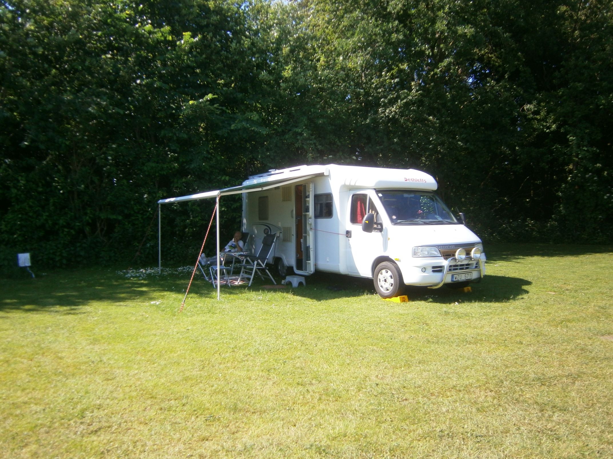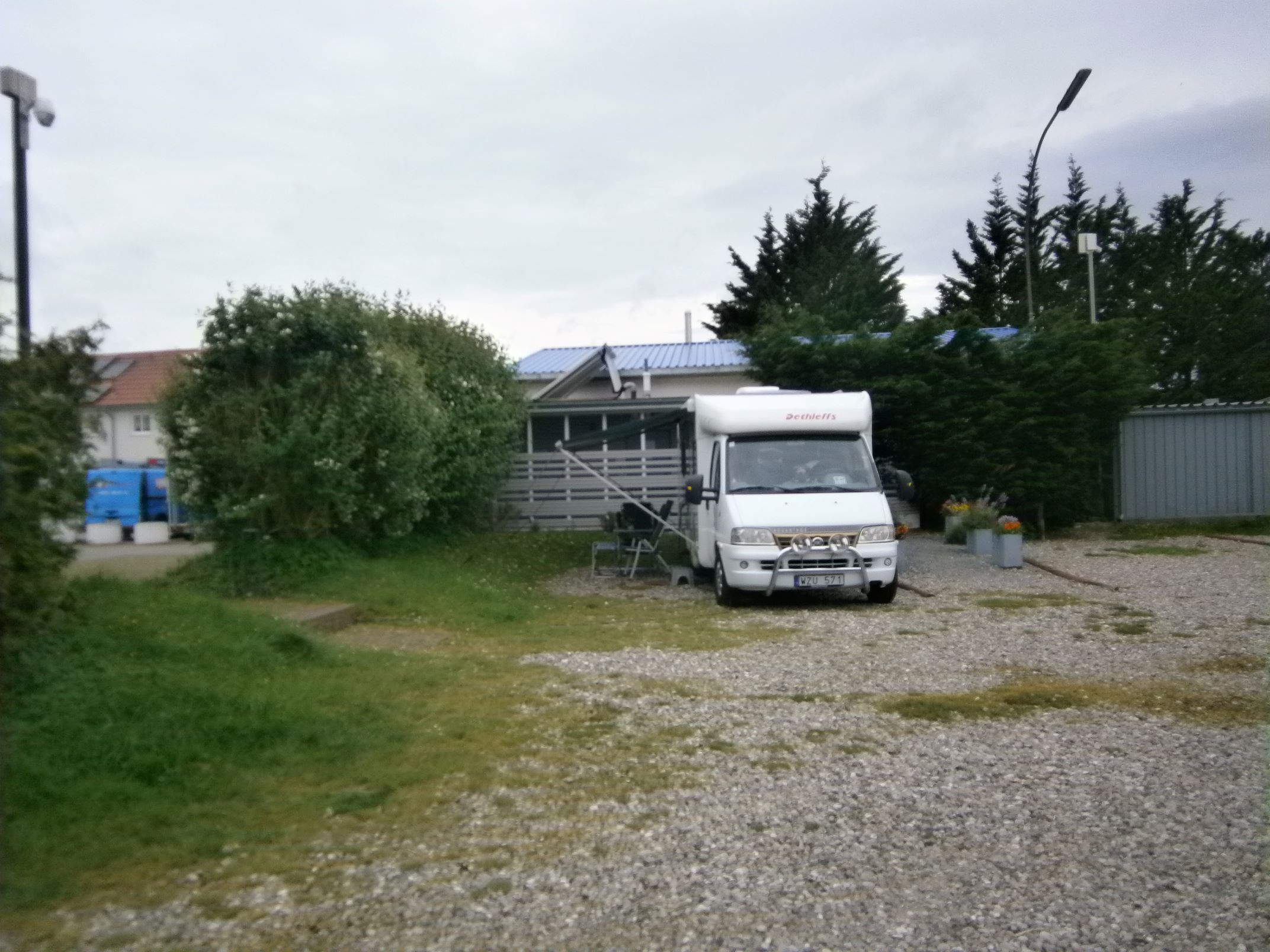 13 juni. Upp 6. Solsken 9,5 gr. Frukost. Checkar ut 5 ö 7. €88/4 dagar. Mot hamnen! Får inte igång Internet i telefonen (där biljett till färja finns). Får backa ut ur filen och släppa fram andra. Tar fram datorn och här har vi Internet! In i kön igen. Checkar in med bokningen i PC:n. Står i bana 5, 7.35. Får åka med 7.45 (biljetten gäller för 8.15). Framme i Rödby i tid. Sol i Danmark också. Betalstationen passeras 10.47 utan problem. Snabbhandlar på Lidl i Bromölla 20 i 1. På Strandängens camping tar vi plats 27 som vanligt. Solen skiner mellan skurarna. TV tittande till middagsdags. Grillkorv med bröd (till mig) och potatissallad till K. Det blev gott. Fortsätter med TV tittande. Det luktar konstigt i bilen inte avlopp. K kollar på batteriet. Det är varmt. Det kan vara det som luktar. Stänger ner allt. Kylskåpet vill inte gå på gasol.
